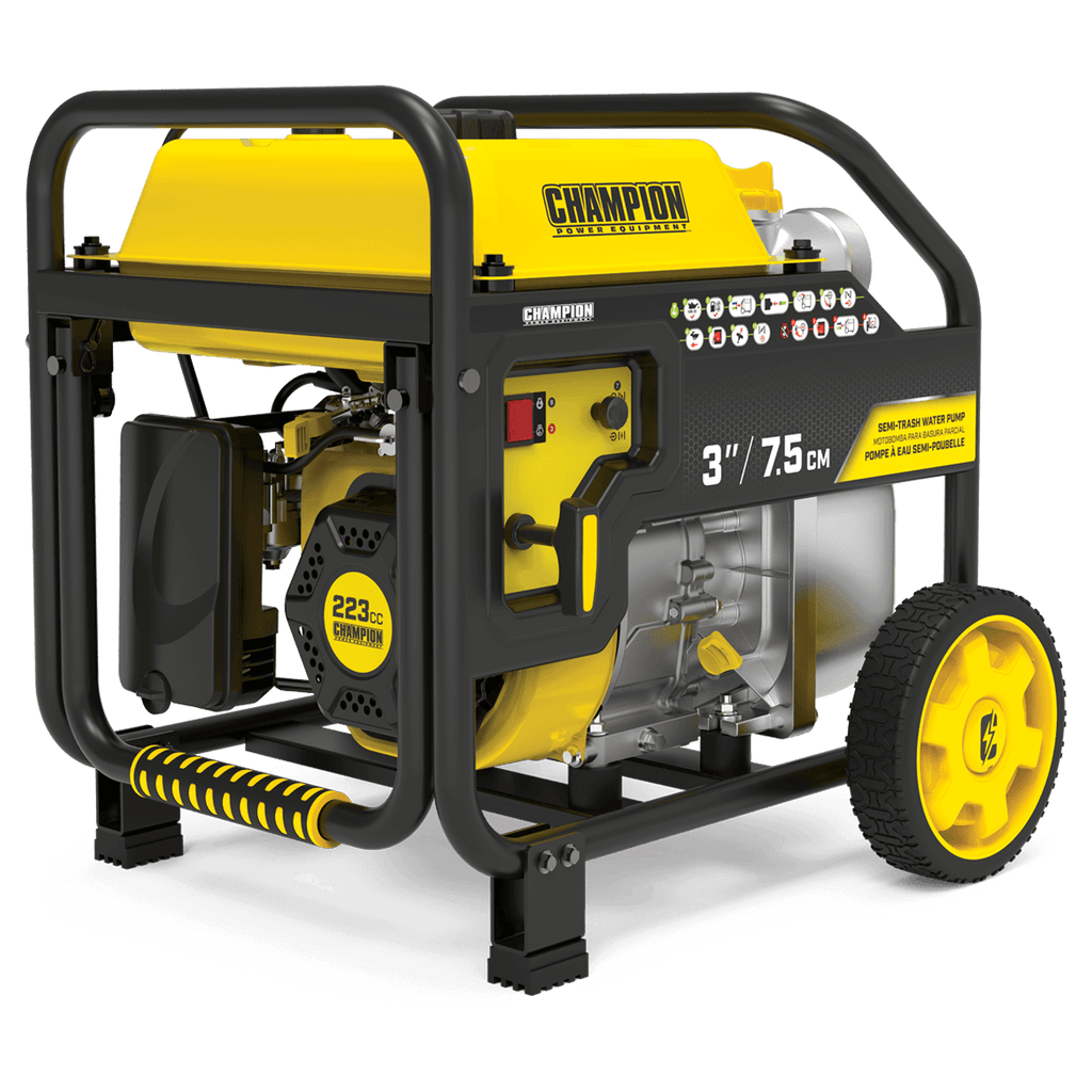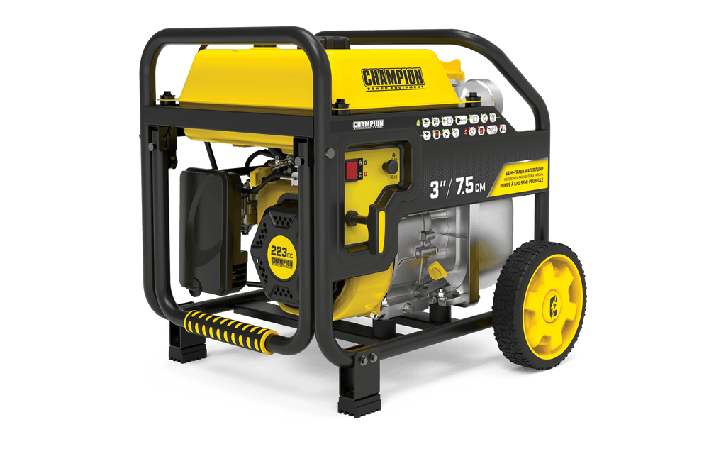 The Champion 100743 7.5cm Clean/Dirty Water Pump with Wheel Kit efficiently handles water transfer tasks, capable of passing solid waste up to 1.9cm in diameter. Ideal for quickly moving water, this pump is perfect for draining or refilling swimming pools and managing shallow flooded areas.